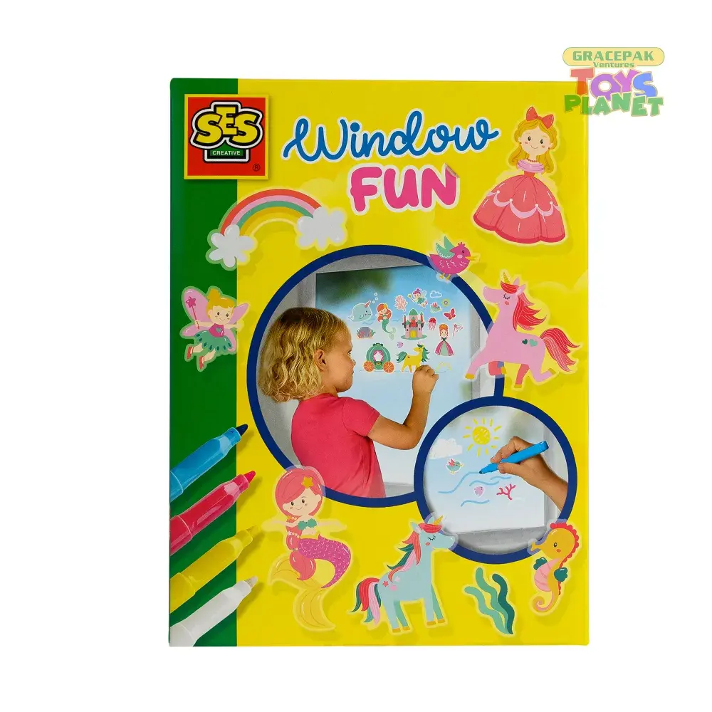 Create your own fairy tail on a window using our SES Window Fun-Princess World. In your story, everything is possible with the many window stickers. Use the 4 colors of glass markers to add drawings, text balloons and more. Let a princess talk to a unicorn or let a mermaid fly to the rainbow. It?s up to you! Encourages creativity and imagination.